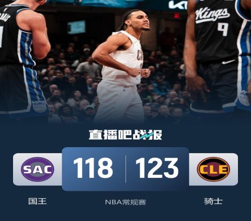 比赛开始,骑士利用主场优势率先发力,内外开花打出16-2的开局,国王轮换阵容开始发力,小萨博尼斯和施罗德联手带队回敬17-4的攻击波强势反超,次节双方继续缠斗,莫布里和米切尔合力砍分,国王连投带罚强势回应,半场战罢国王71-68领先骑士。易边再战,国王命中率下降,骑士大举进攻强势反超,末节双方争夺陷入白热化, 关键时刻国王连续三分不中,最终,骑士123-118力克国王,主场过关。