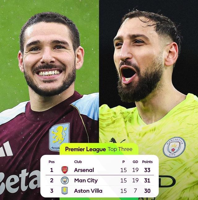 曼城凭借一波3连胜积31分来到第2,阿斯顿维拉积30分位居第3仅差榜首3分,形成了三足鼎立的争冠态势!