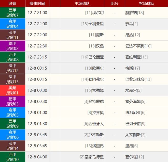 其他赛事比分: